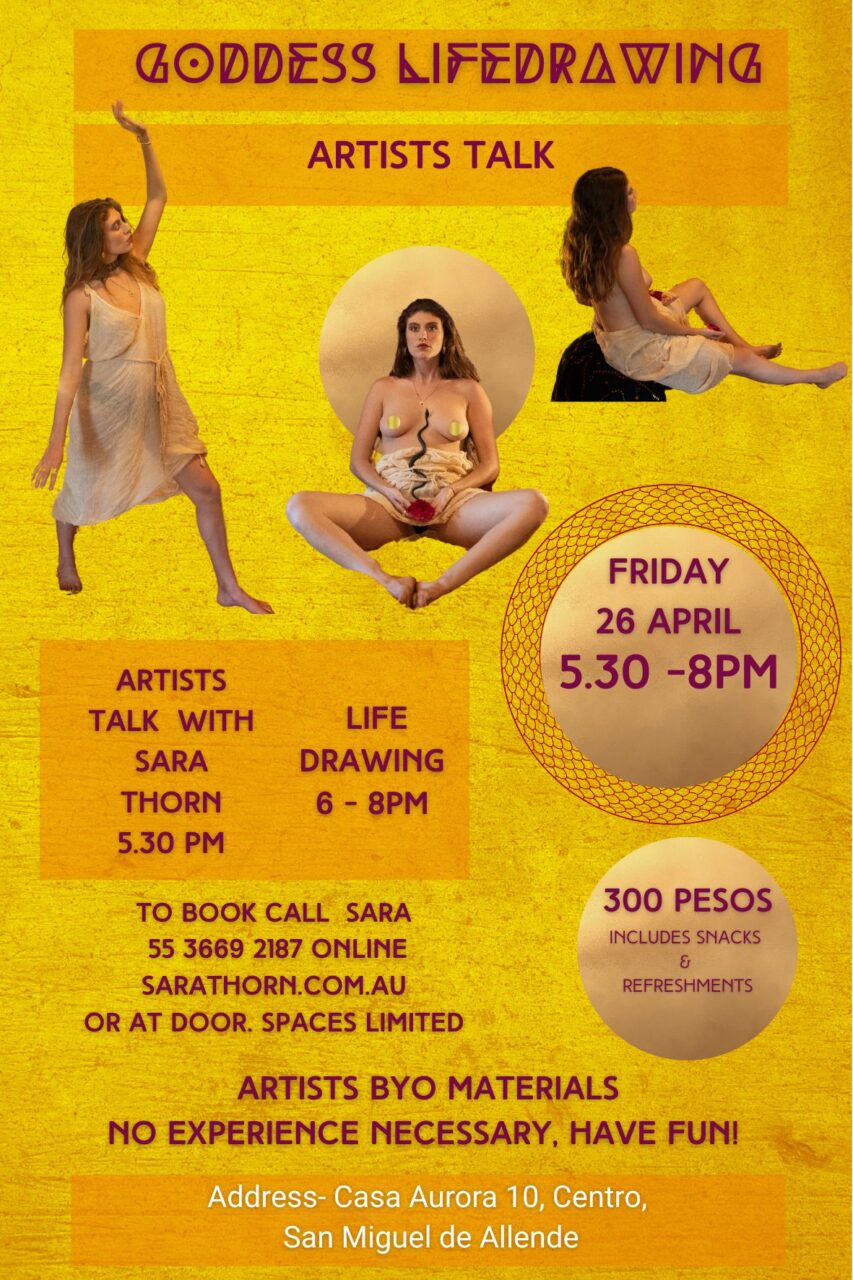 Join us for the inaugural Goddess Life drawing class in the beautiful town of San Miguel de Allende. The night will be hosted by Sara Thorn with a artist talk presenting her new works in the collective art space of Casa Aurora followed by a 2 hour life drawing session.The model will be dressed […]