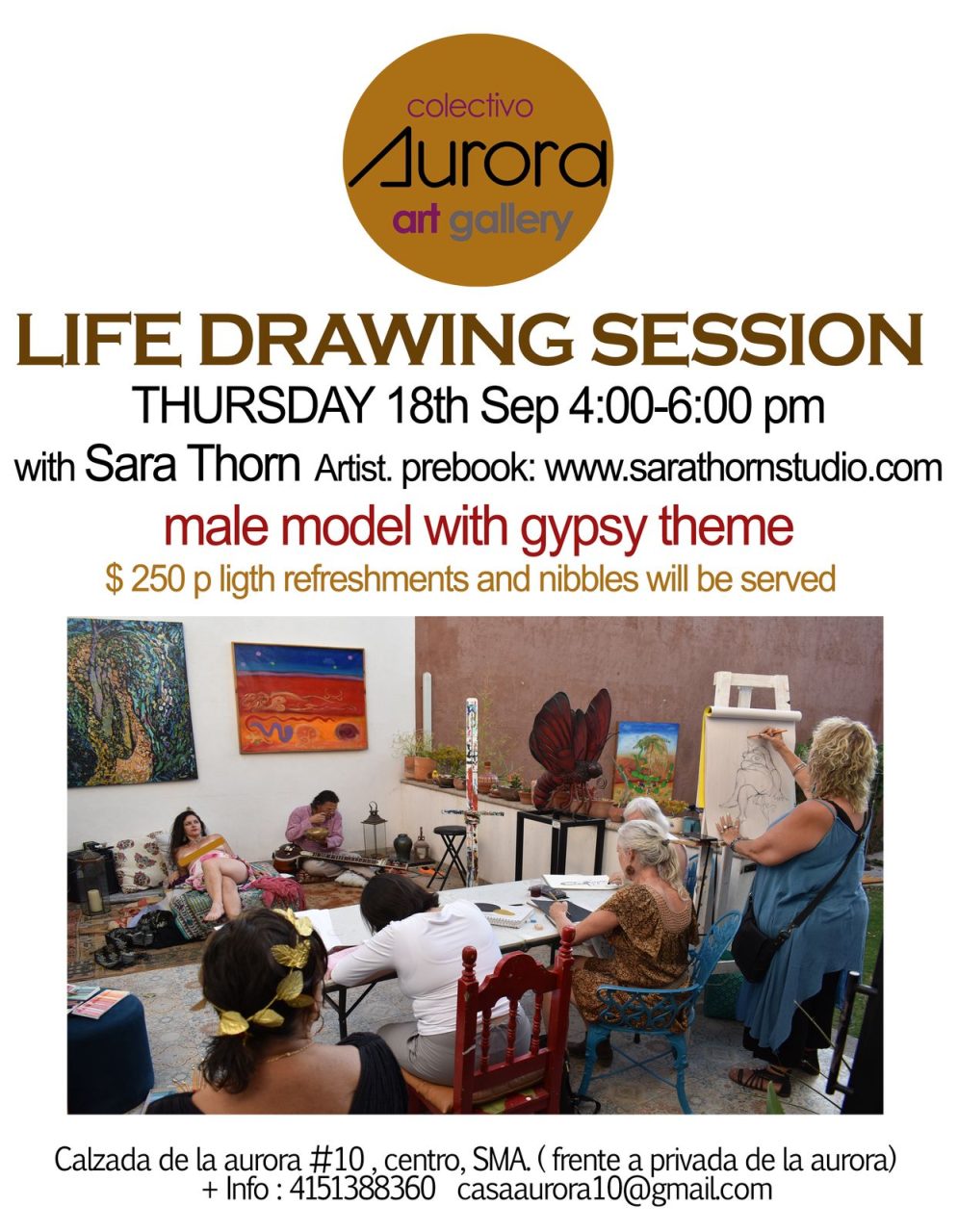 Life Drawing class with a male model dressed in bohemian gypsy accessories and props Thursday 18 September 4-6pm 2 ,5,10,20 minute poses $13.50 usd or 250 pesos ,refreshments and nibbles will be served All levels,tuition will be available on request basic art materials will be available